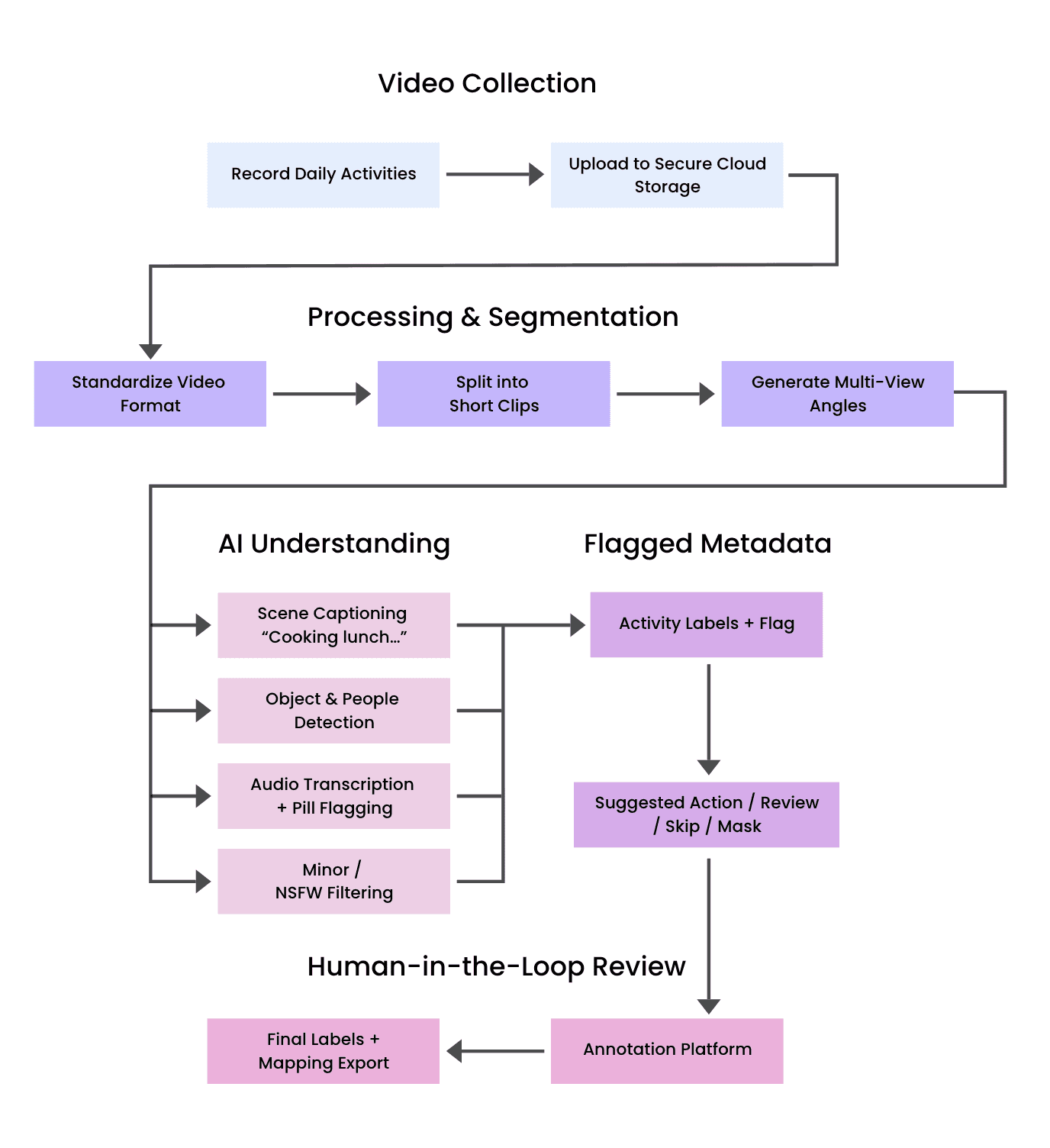 Here’s a simplified breakdown of what happens inside a well-governed, real-world video processing pipeline: